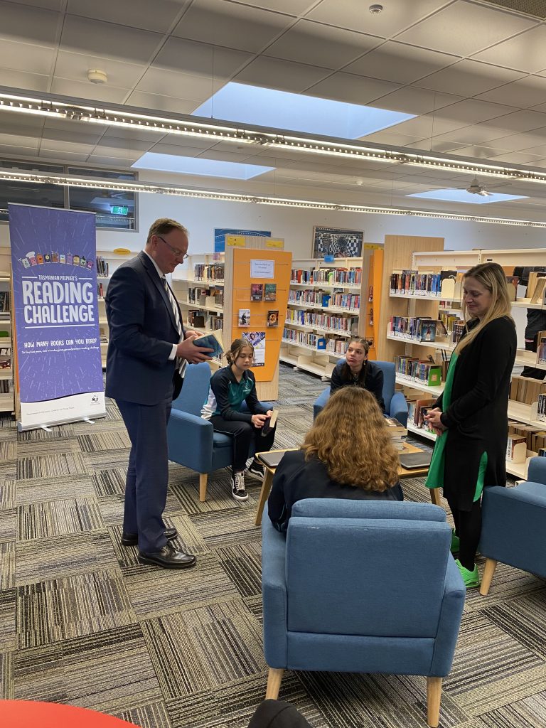 Premier Rockliff, Education, Children and Youth Minister Roger Jaensch, and Reading Champion Dr Lucy Christopher joined students at Kingston High School on Thursday to talk about their personal reading challenge this year.