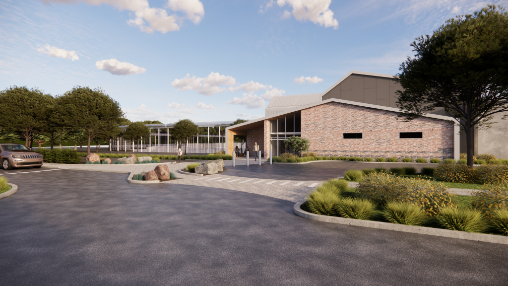 Artist’s impression of the new Tasmanian Youth Justice Facility – View from entry building to visitor centre